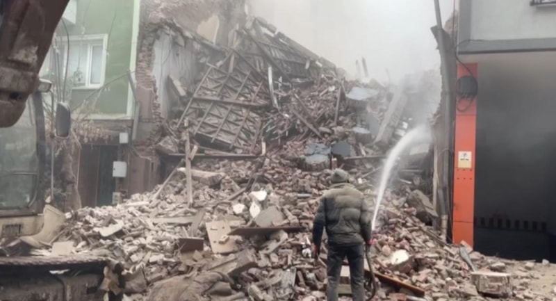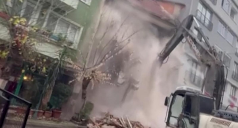 Ayakta kalan son kat da iş makinesinin müdahalesiyle yıkıldı. Yıkım anında sokak yoğun toz bulutuyla kaplanırken o anlar, çevredeki vatandaşlar tarafından cep telefonu kameralarıyla kaydedildi.