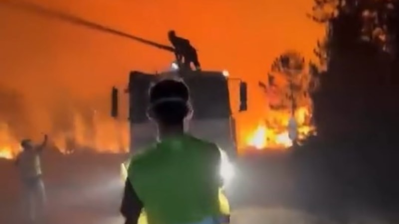 Geceyi aydınlatan alevlerin bir anda yön değiştirmesi mücadeleye katılanlara da korku dolu anlar yaşatıyor.