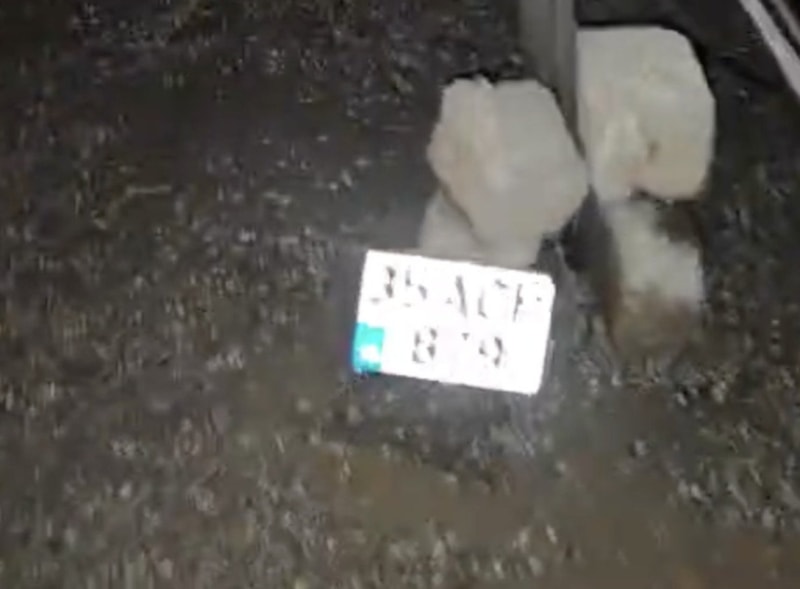 İhbar hattına gelen videoda, yol kenarlarında sıralanmış plaka, jant, lastik ve diğer araç parçaları net bir şekilde görüldü.