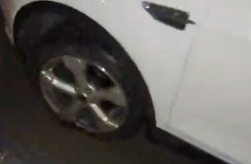 Yol kenarındaki lastikleri görüyorsunuz. Aracın iki lastiği de gitmiş gördüğünüz üzere, parçalanmış. Vatandaşımızın mağduriyeti.