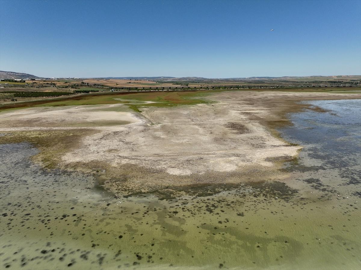 Gölde suların çekildiği bölgelerdeki toprağın kuruyarak çatladığı gözlendi.