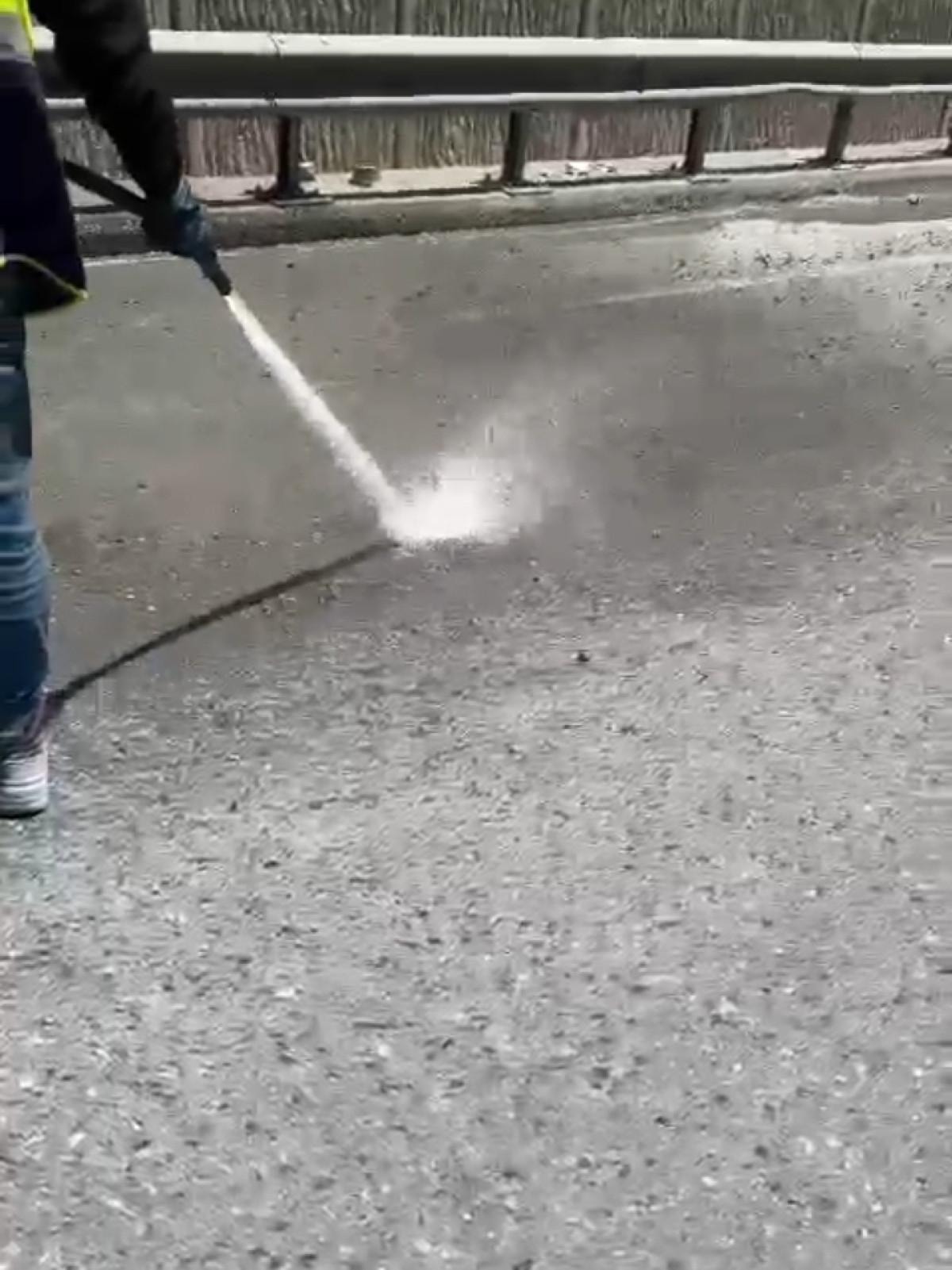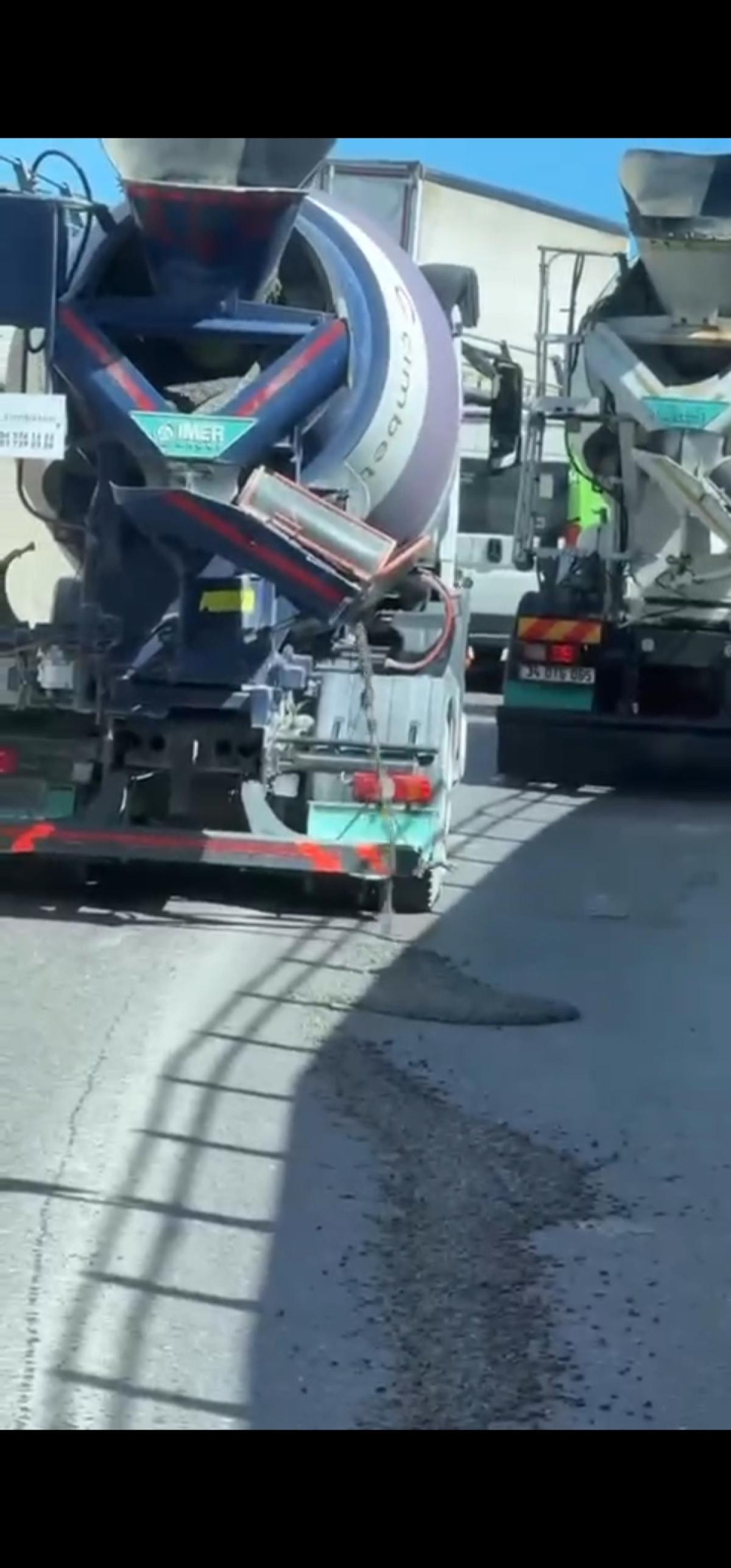 Yola dökülen beton ise, mikserin bağlı bulunduğu firmaya temizletildi.