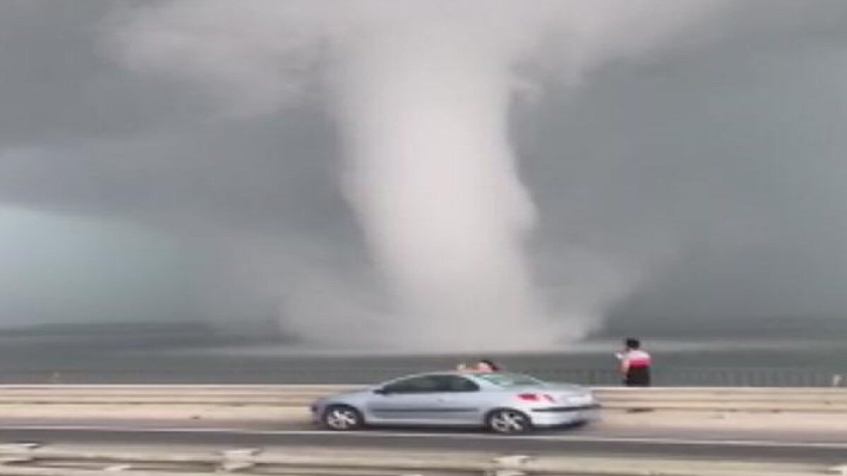 Dün, yağmur ve dolunun hakim olduğu İstanbul'un Büyükçekmece ilçesinde çıkan hortumu görenler telefonlarına sarıldı.