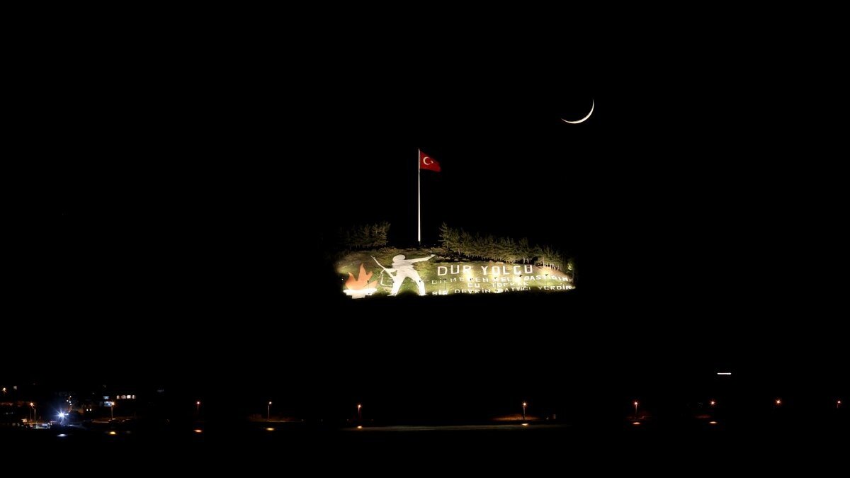 Çanakkale Savaşları'nın bir nevi kilit noktası olan, Eceabat ilçesine bağlı Kilitbahir köyü sırtlarında bulunan ‘Dur Yolcu’ yazısı ile yazının üzerinde beliren hilalin buluşması, fotoğrafçılar ve vatandaşlar için görsel bir şölen oluşturdu.