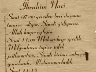 21 yaşındaki Teğmen İbrahim Naci savaşa giderken kendisinin ve ailesinin adresini yazarak şehit düşmesi halinde ailesine ulaştırılmasını istediği 29 günlük Çanakkale notları tam 98 yıl sonra ortaya çıktı. İbrahim Naci ölümünden önceki son cümlelerin sonuna imzasını attı. Daha sonra günlüğü alan ve İbrahim Naci'nin şehadetiyle ilgili not yazan bölük komutanı yüzbaşı Bedri Efendi ise 12 gün sonra şehit oldu. İbrahim Naci'nin, İstanbul Beşiktaş'tan Çanakkale Kerevizdere'ye uzanan 29 gününü anlattığı günlükte, aşkları, özlemleri, vatan sevgisi ve yaşadıkları yer alıyor. İbrahim Naci, günlükte muharebeler sırasındaki sosyal hayattan savaşın insan üzerindeki etkisine, savaşın bölgede yaptığı tahribata kadar birçok konuyu anlatıyor.