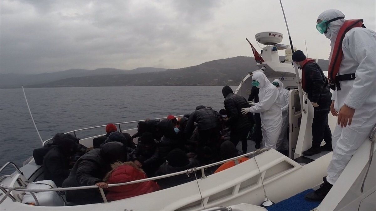 Bölgeye giden ekipler, Yunan Sahil Güvenlik ekiplerince Türk karasularına itilerek, ölüme terk edilen 2 can salı içerisindeki toplam 26 göçmeni buldu.