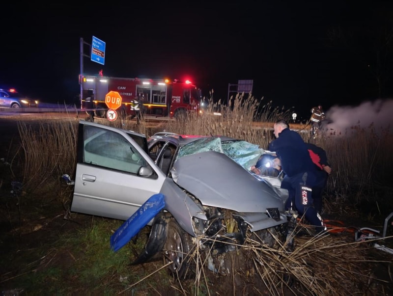 Çanakkale'de saat 20.00 sıralarında Çan ilçesinde Etili sapağında, Etili köyünden gelen Rabia A. idaresindeki 34 KMU 689 plakalı araç, Etili sapağından yola çıktığı sırada Nuri Ziya Mavi yönetimindeki 17 ZC 606 plakalı otomobil ile çarpıştı.