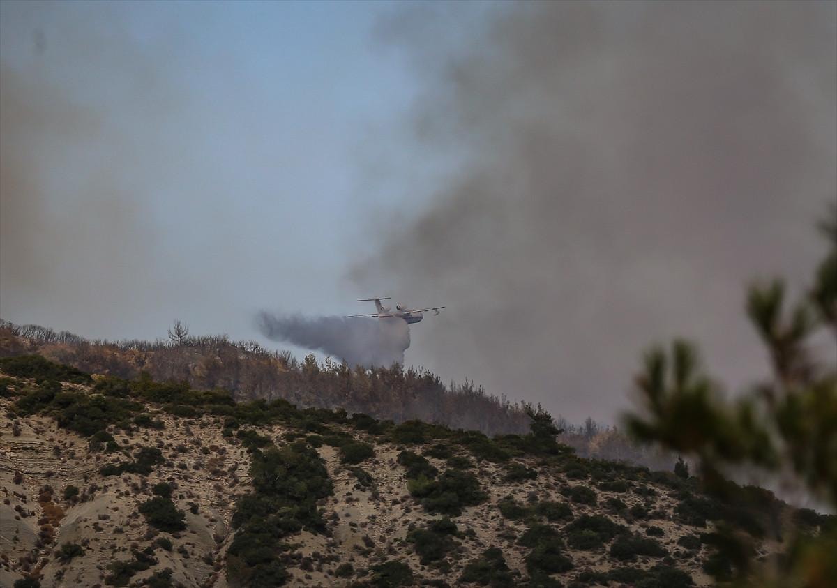 Orman yangınına 12 uçak, 18 helikopter, 343 kara aracı ve 1300 personelle müdahale ediliyor.