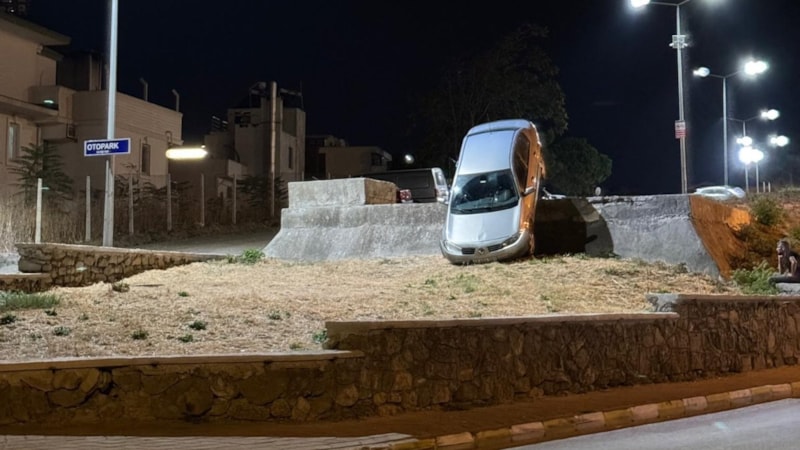 Çanakkale'nin Gelibolu ilçesinde bir otomobil otopark duvarında asılı kaldı. Sürücü G.G. 3,93 promil alkollü çıktı.