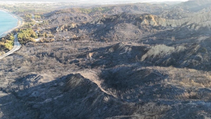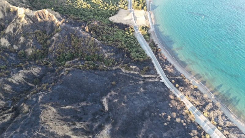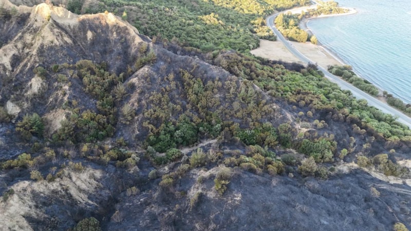 Çanakkale Savaşları'nın yaşandığı Tarihi Gelibolu Yarımadası'ndaki orman yangınında yanan alanlar dron ile görüntülendi.
