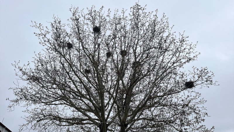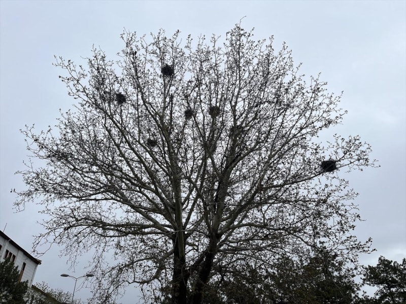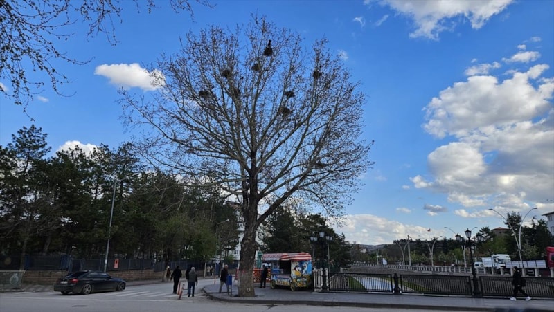 Çankırı'da bir ağaçta yer alan 8 karga yuvası, görenlerin dikkatini çekiyor.