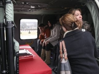 Cenaze helikopterden indirilirken şehidin oğlu İbrahim Demirel (15) ve bazı yakınları, tabuta sarılarak gözyaşı döktü.