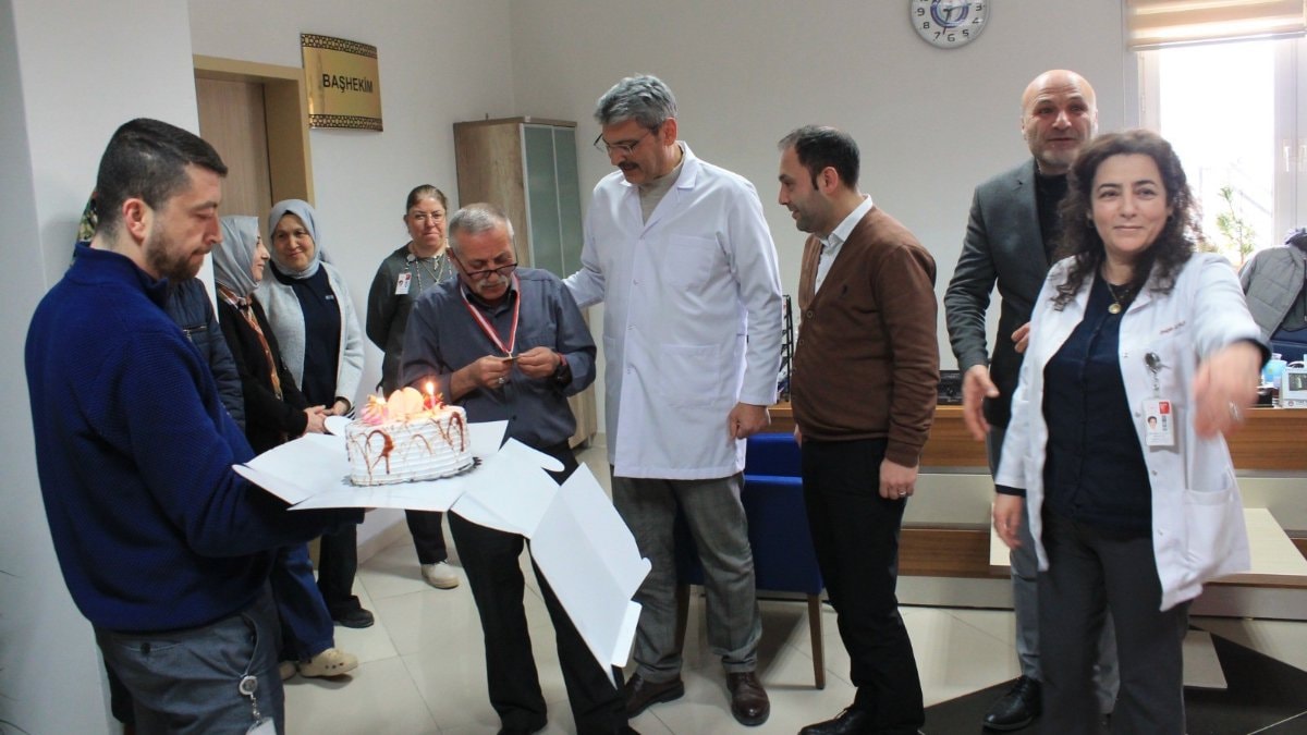 Örnek bir çalışma disiplini sergileyen ve emekli olmaya hazırlanan Karadağcı için hastane yönetimi tarafından tören düzenlendi.