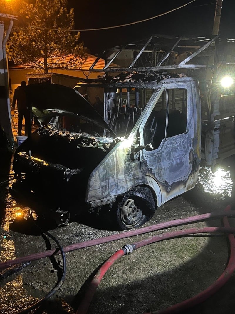Çorum’un Alaca ilçesi Sarısüleyman köyünde Naci A.'ya ait kamyonette park halinde bulunduğu sırada yangın çıktı.