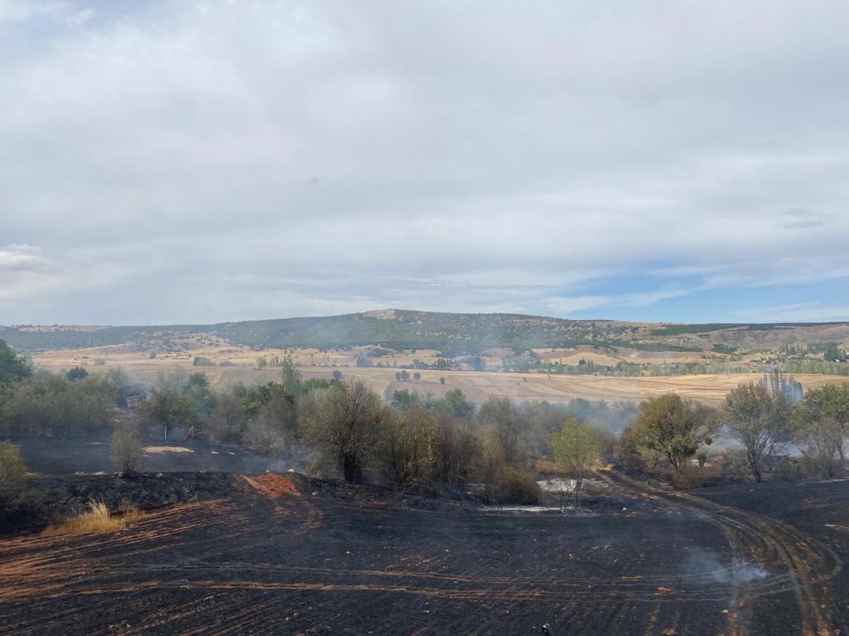 Alaca ilçesi Küçük Dona köyünde meydana gelen olayda, köy mevkiindeki biçili tarla ve ağaçlık alanda henüz belirlenemeyen sebeple yangın çıktı.