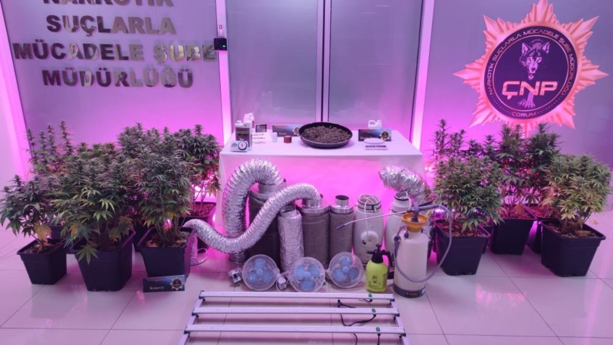 Operasyonda apartman dairesinin bir bölümünün esrar bahçesi gibi kullanıldığı görülürken evde yapılan aramada hasadı yapılıp kurumaya bırakılmış esrar, kenevir tohumu, saksılarda kenevir bitkisi, özel gübre, hassas terazi, esrar öğütme aparatı ve kenevir bitkisi yetiştirmede kullanılan özel düzenek ve aparatlar ele geçirildi.