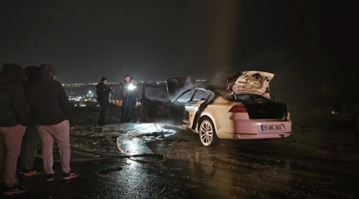 - Çorum’da park halindeki bir araç bilinmeyen bir nedenle alev aldı.