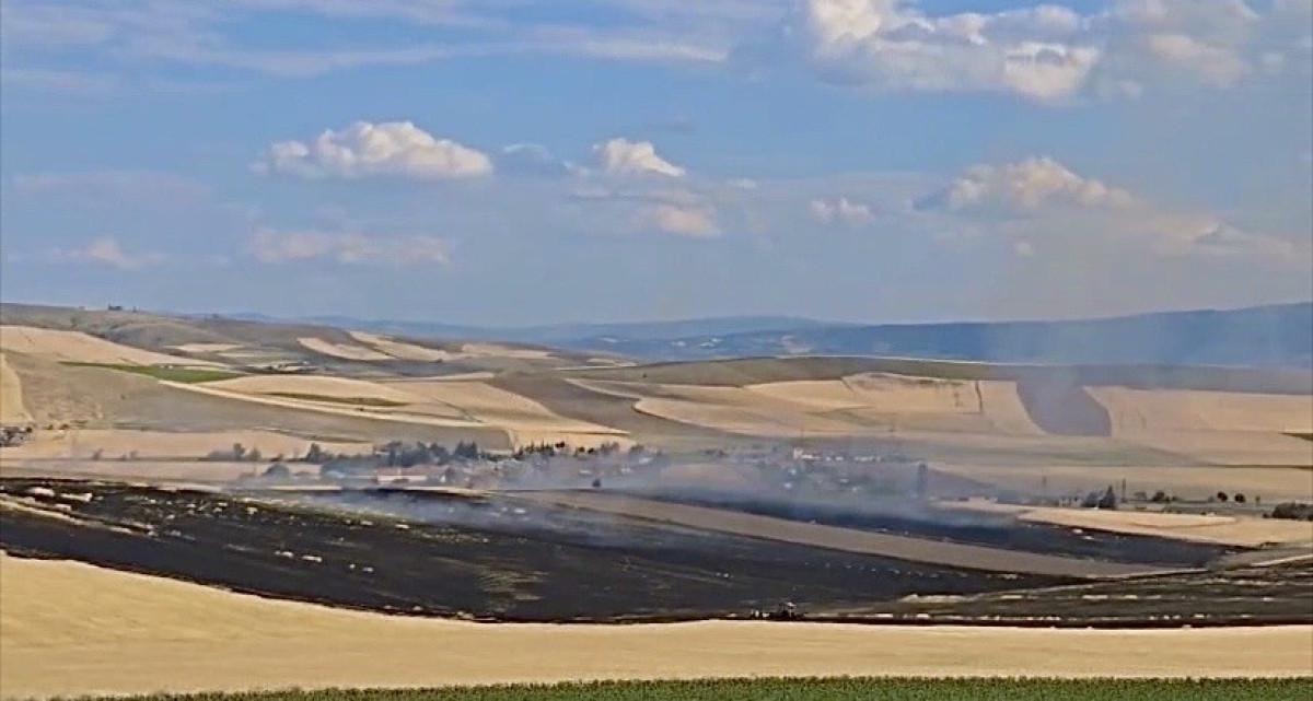Çorum'da Gülabibey Mahallesi Güzelyurt Sokak'ta bulunan tarlada çıkan yangınla ilgili polis ekiplerince çalışma başlatıldı.