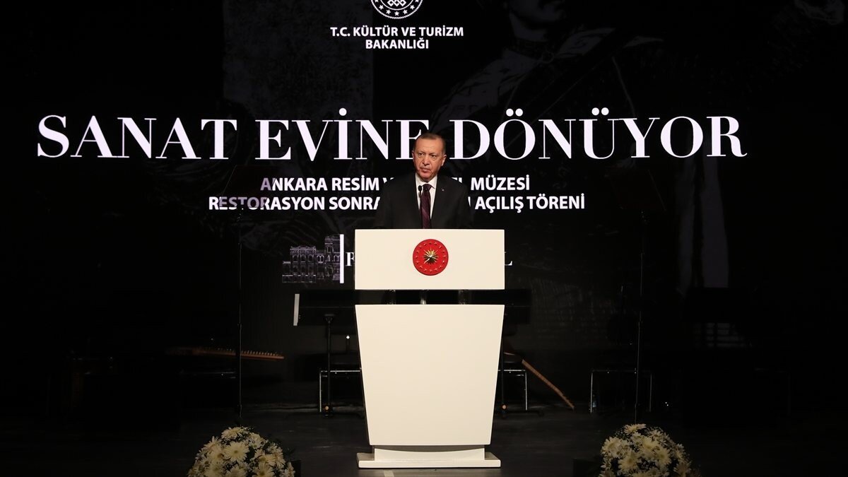 Erdoğan, burada yaptığı konuşmada, restorasyonu tamamlanarak hizmete açılan Ankara Devlet Resim ve Heykel Müzesi'nin Ankara’ya, Türkiye’ye, turizme hayırlı olmasını diledi.