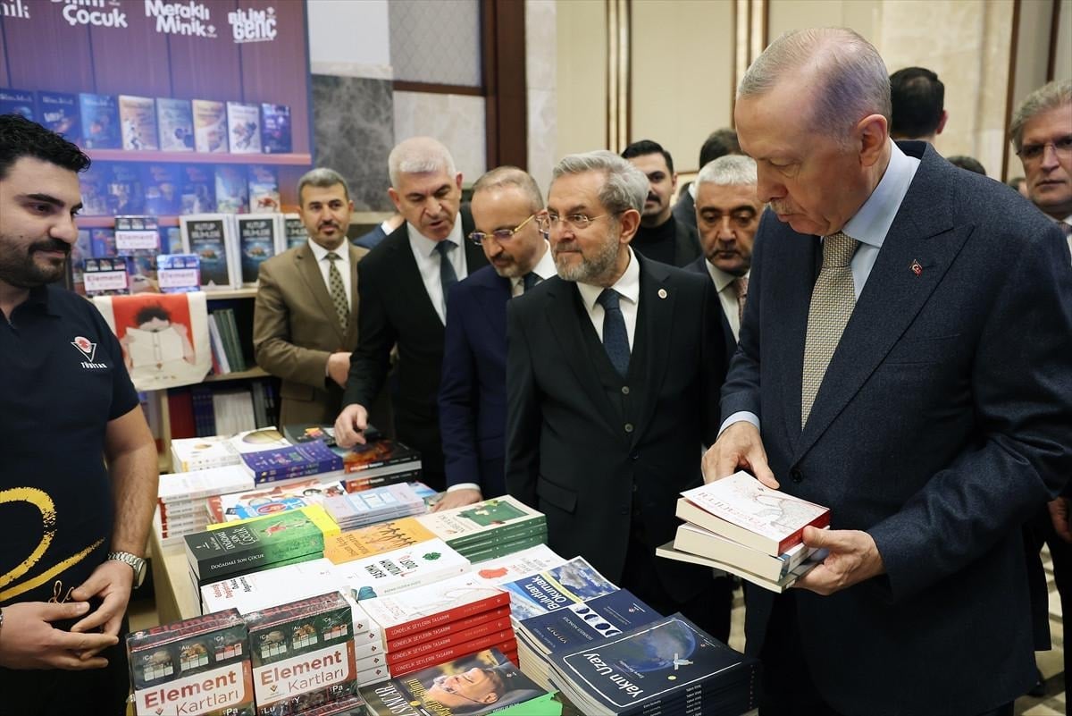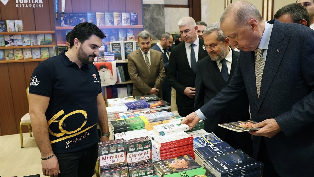 Paylaşımda, Cumhurbaşkanı Erdoğan'ın beraberindekilerle stantları gezerek, kitapları incelediği anlara ilişkin fotoğraflara da yer verildi.