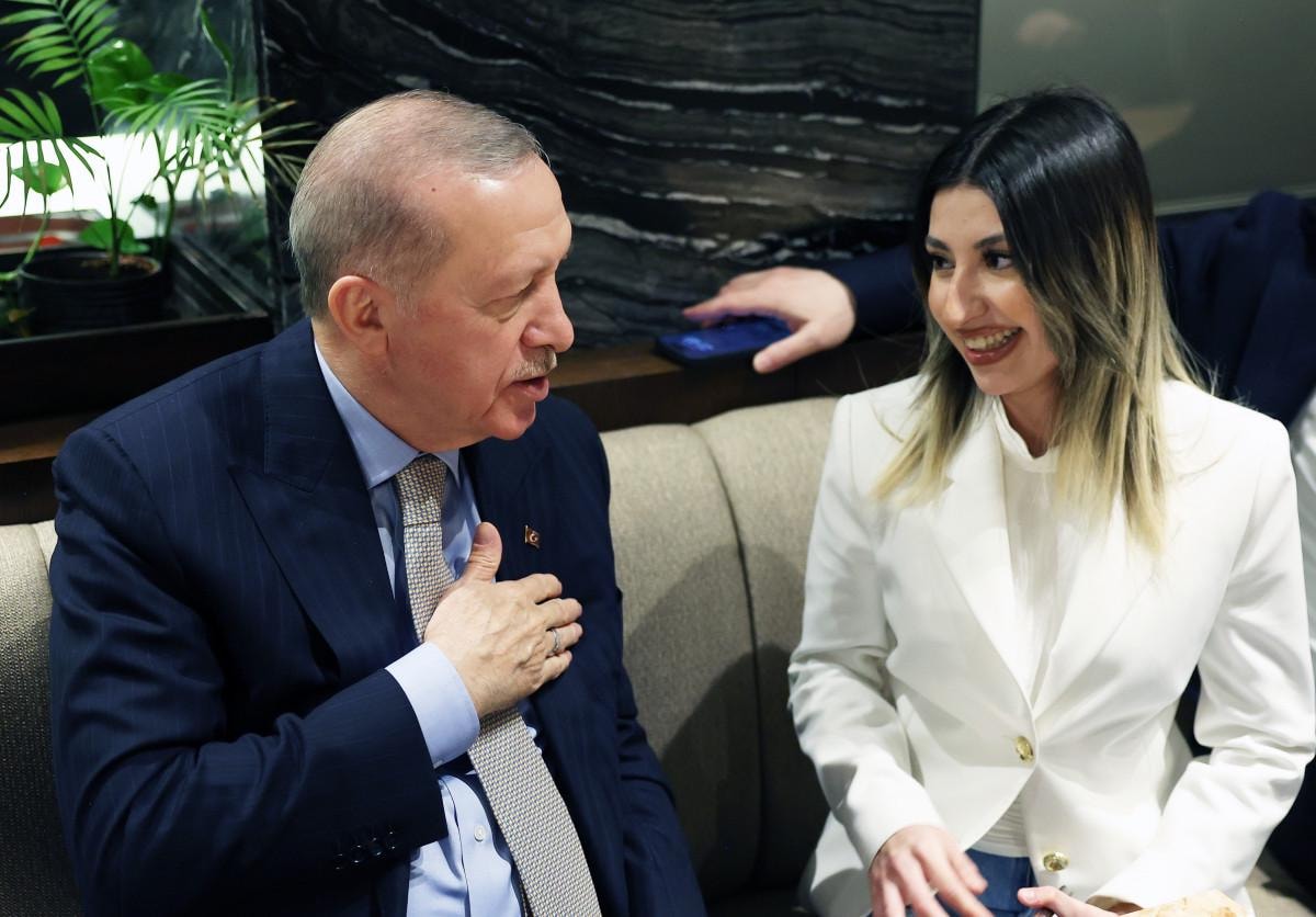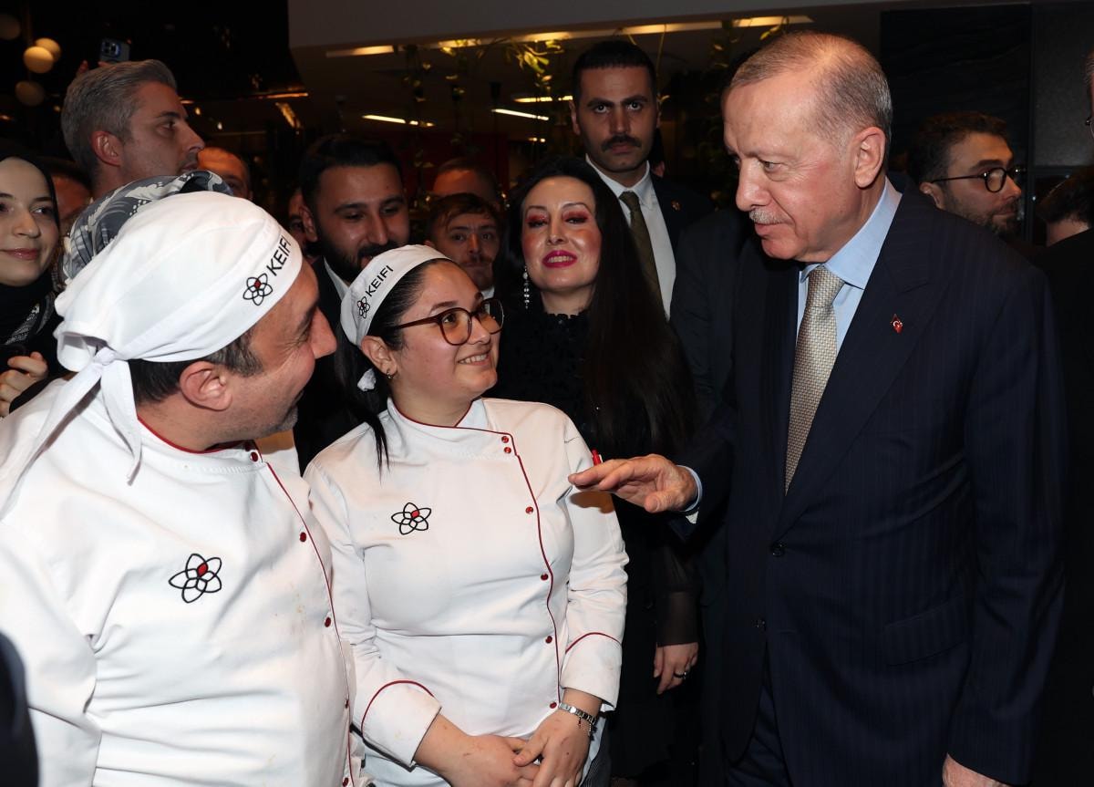 Cumhurbaşkanı Erdoğan'a kafe ziyaretinde Cumhurbaşkanı Yardımcısı Cevdet Yılmaz ile Milli Eğitim Bakanı Yusuf Tekin de eşlik etti.