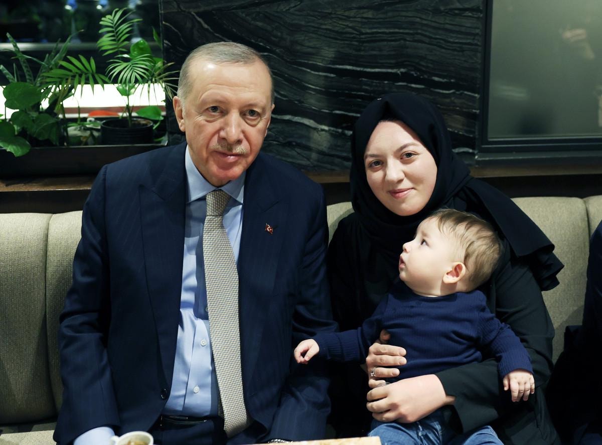 Gençlerle ve ailelerle bir süre sohbet eden Cumhurbaşkanı Erdoğan, kafede bulunan çocukları da sevdi.