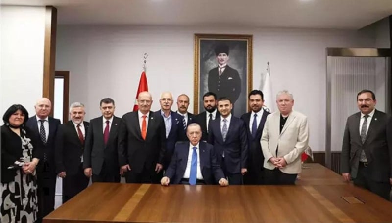 ATO'dan yapılan açıklamaya göre, Cumhurbaşkanı Erdoğan'a ziyaretinde, Cumhurbaşkanı Yardımcısı Cevdet Yılmaz, Ticaret Bakanı Ömer Bolat, Sanayi ve Teknoloji Bakanı Mehmet Fatih Kacır, Sağlık Bakanı Kemal Memişoğlu, Gençlik ve Spor Bakanı Osman Aşkın Bak, Cumhurbaşkanlığı Özel Kalem Müdürü, Büyükelçi Hasan Doğan, AK Parti Ankara Milletvekili Lütfiye Selva Çam, AK Parti Düzce Milletvekili Ayşe Keşir, Ankara Valisi Vasip Şahin ve AK Parti Ankara İl Başkanı Hakan Han Özcan eşlik etti.