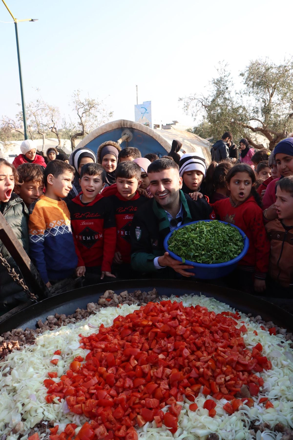 Özellikle çocuklar tarafından sevgiyle karşılanan CZN Burak, hem göçmenler için büyük kazanlarda yemek pişirdi, hem de çeşitli hediyelerle ve gösterdiği yakın ilgiyle yüzleri güldürdü.