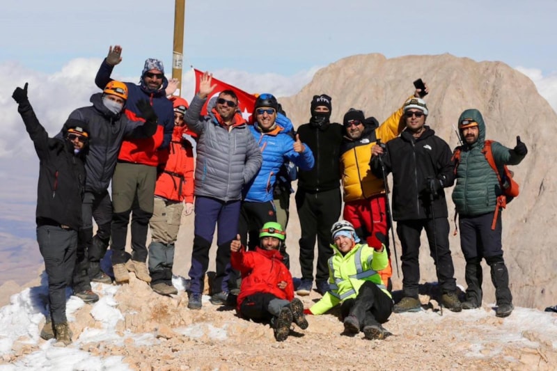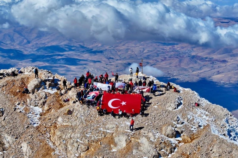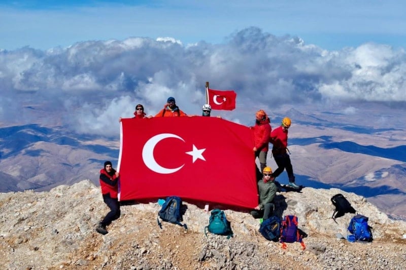 Türkiye’nin farklı illerinden gelen 102 dağcı, 3 bin 723 metre yüksekliğindeki Emler Zirvesi’ne tırmanarak Cumhuriyet’in 102. yılını doruklarda kutladı.