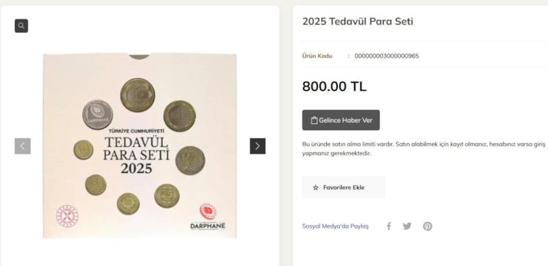 Darphane tarafından yayımlanan resmi bültene göre, 2025 yılına ait tüm madeni paraların “çil” kondisyonlu örneklerinin yer aldığı set, ayrıca yalnızca bu koleksiyona özel basılan “Darphane Parası” ile birlikte satışa çıkacak.