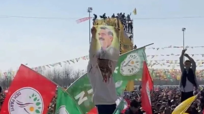 İstanbul Yenikapı'da nevruz adı altında düzenlenen etkinlikte, PKK elebaşı Öcalan'ın posterleri açıldı.