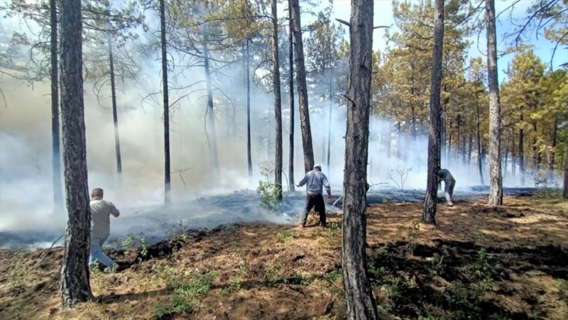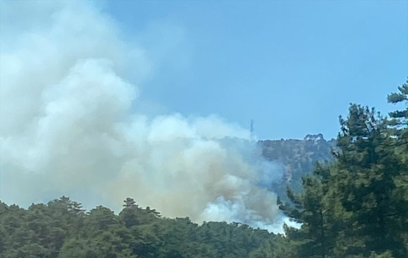 Karaçay Mahallesi Karadağ mevkiindeki ormanlık alanda, saat 13.45'te henüz belirlenemeyen nedenle yangın çıktı.