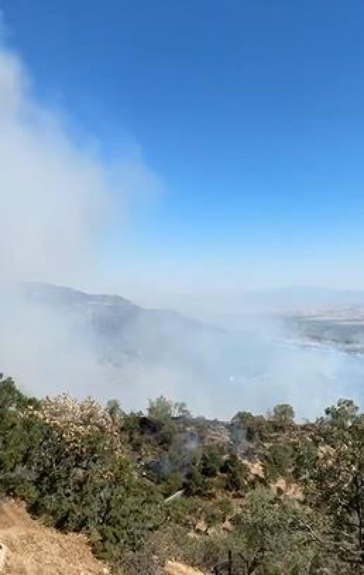 Rüzgarın etkisiyle yangının büyüdüğü öğrenilirken karadan ve havadan müdahaleler sürüyor.