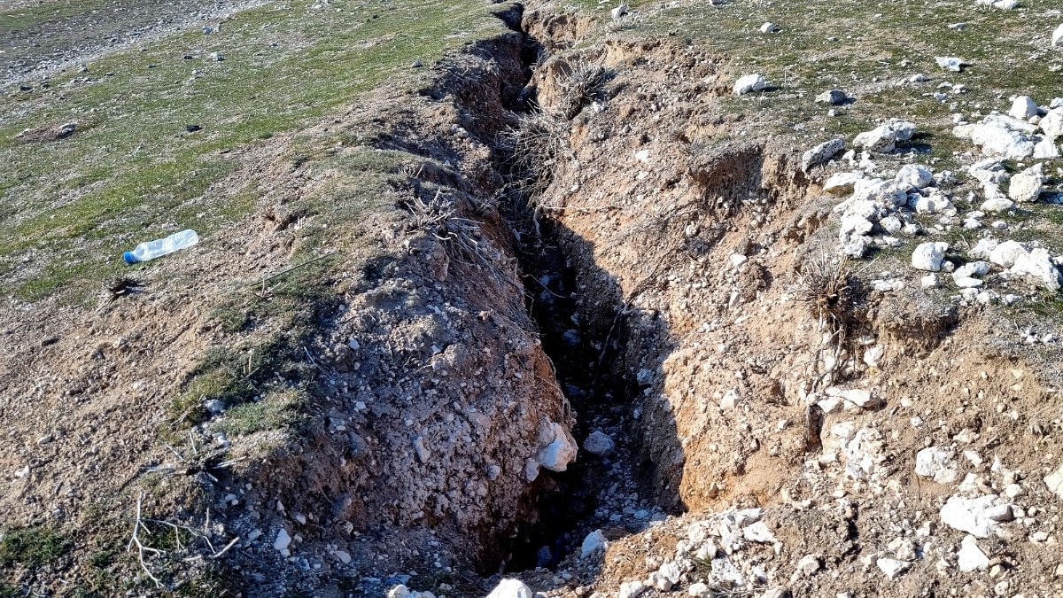 Karayolu ve arazilerdeki yarılmalar depremin şiddetini gözler önüne sererken yarılmalar yer yer 2 metreye kadar indiği gözlemlendi.