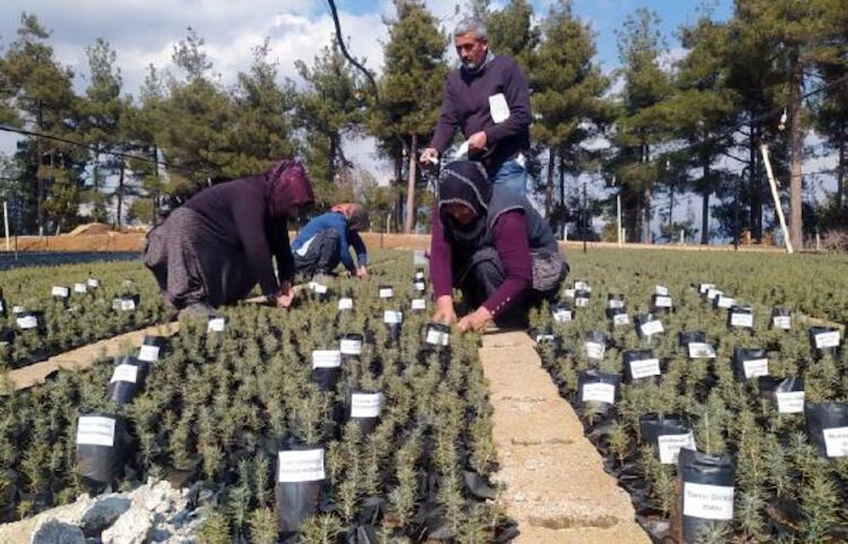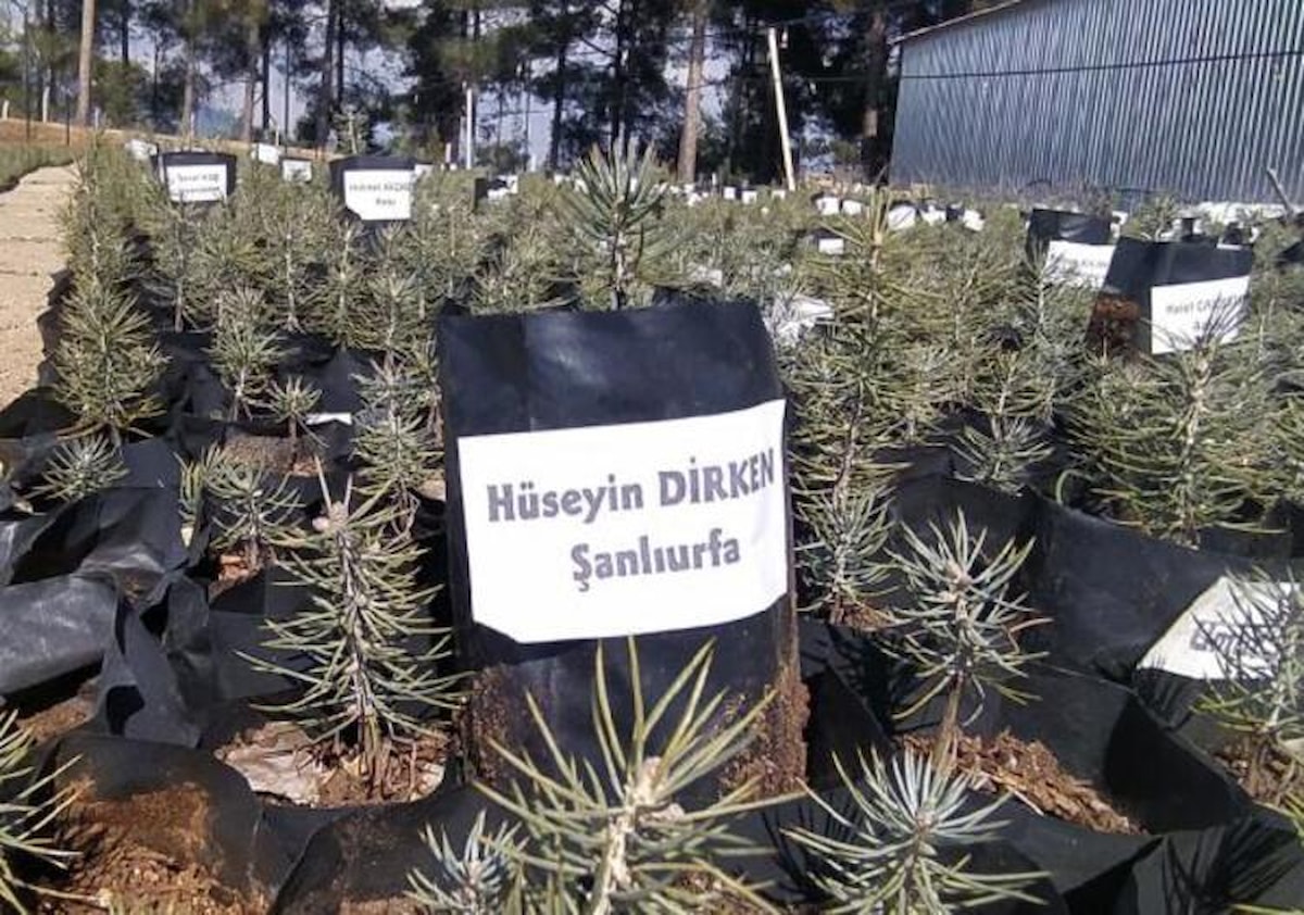 Mersin'in Çamlıyayla ilçesinde Orman Genel Müdürlüğü'ne bağlı Çakıllı fidanlık ekipleri, tüplere yerleştirdikleri sedir, ladin ve çamdan oluşan yaklaşık 50 bin fidanın üzerlerine depremde hayatını kaybedenlerin isimlerini yazdı.