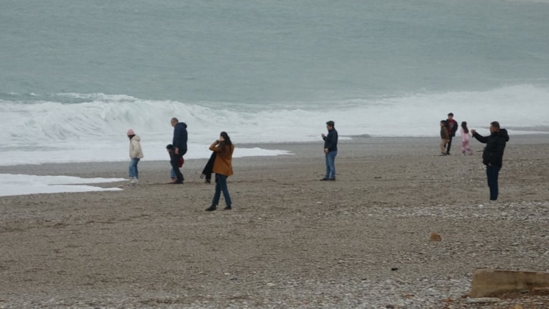 Güçlü dalgaların kıyıya vurmasıyla Konyaaltı Sahili adeta beyaz bir örtüyle kaplandı. Dalgaların oluşturduğu köpükler, sahil boyunca görsel bir şölen sundu. Sabah saatlerinden itibaren hava parçalı bulutlu ve hafif rüzgârlı seyrederken birçok vatandaş, bu manzarayı yerinde görmek için sahile geldi.