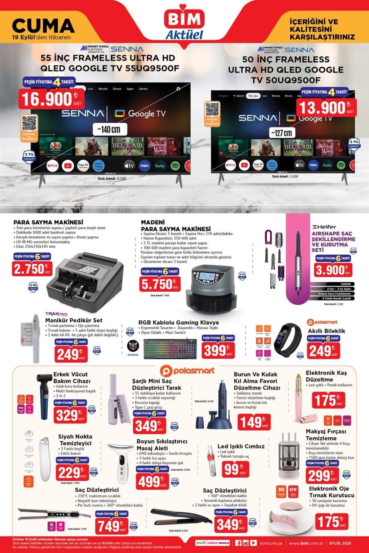 Bu haftanın en dikkat çeken ürünleri arasında Senna markalı televizyonlar ve satışa sunulan para sayma makineleri yer alıyor.