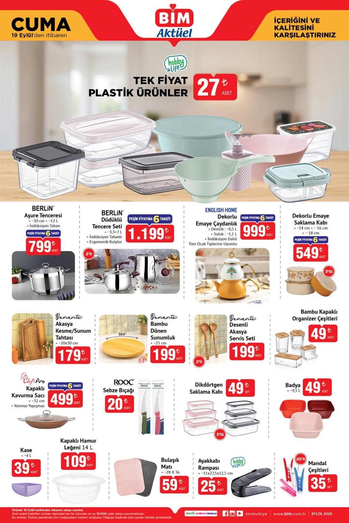 - BİM, 19 Eylül 2025'te birçok kategoride aktüel ürünlerini satışa sunuyor.