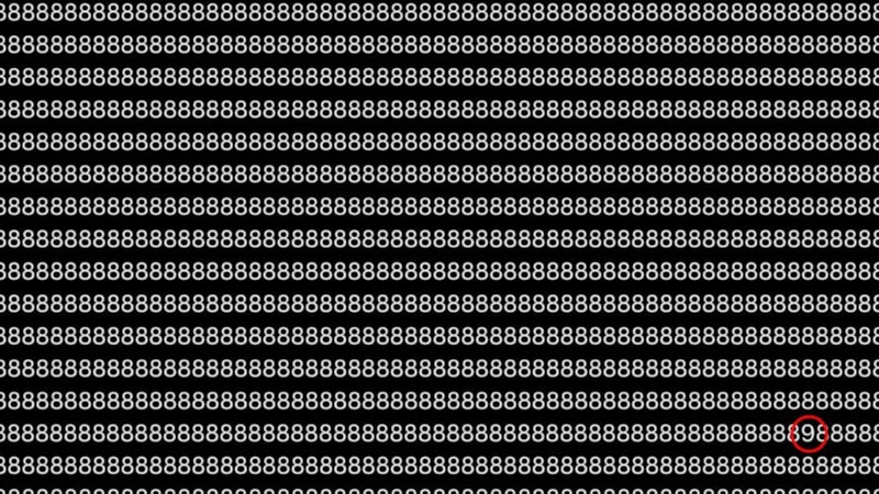 Bu optik illüzyon testinde, onlarca 8 rakamı arasına gizlenmiş farklı bir sayı bulunuyor. Katılımcılardan, yalnızca 8 saniye içinde bu sayıyı fark etmeleri isteniyor. Peki, siz bulabilecek misiniz?