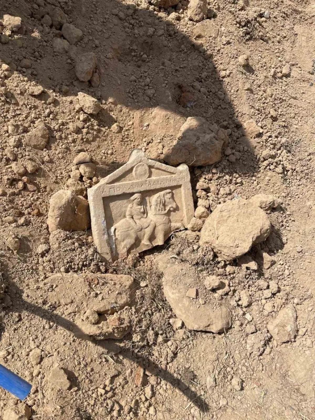 Çal ilçesi İsmailler Mahallesi’nde Denizli Büyükşehir Belediyesi Park ve Bahçeler Müdürlüğü ekiplerince yürütülen düzenleme çalışmaları sırasında, dolgu toprak içerisinde kabartmalı bir taş bulundu.