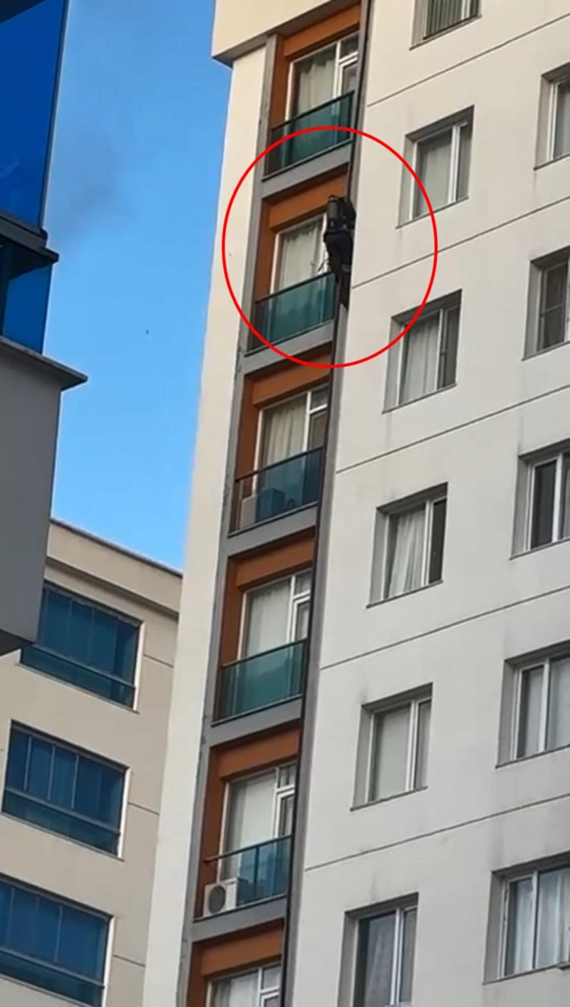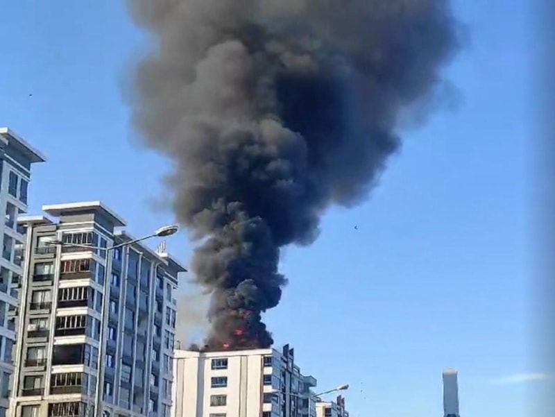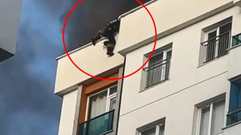 Mahsur kalan görevli H.E., kendisine uzatılan itfaiye hortumuna tutunarak 11 katlı binanın çatısından aşağıya doğru inmeye çalıştı. Bu sırada eli hortumdan kayan H.E., metrelerce yükseklikten düştü.