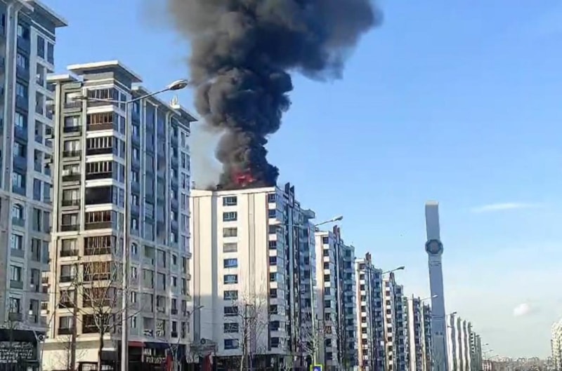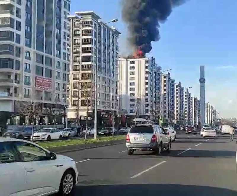 Yangın kısa sürede büyürken, apartman sakinleri evlerini tahliye etti. Olay yerine gelen polis ekipleri binanın çevresini boşaltırken, itfaiye erleri de yangına müdahale etti. Çatıya çıkan itfaiye görevlisi H.E., hızla yayılan yangında alevlerin arasında kaldı.