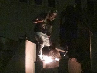 Anadolu lisesi bahçesindeki Atatürk büstüne yönelen YDG-H üyeleri, Atatürk büstünü benzin döküp yaktılar. Daha sonra da büstü yerinden söktüler. Burada açıklama yapan bir gösterici, "Bizim amacımız heykeller değildir. Bugün Lice'de bir yurttaşımız katledildi. Biz bugün bunun intikamını almak için bu eylemi gerçekleştirdik. Mahsum Korkmaz anıtına yapılan saygısızlığı da kabul etmiyoruz" dedi.