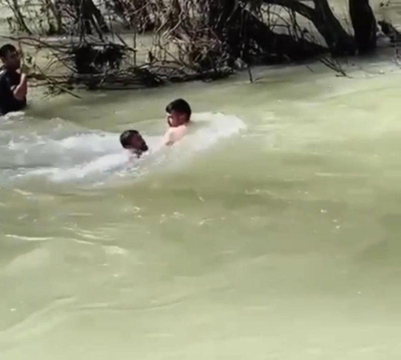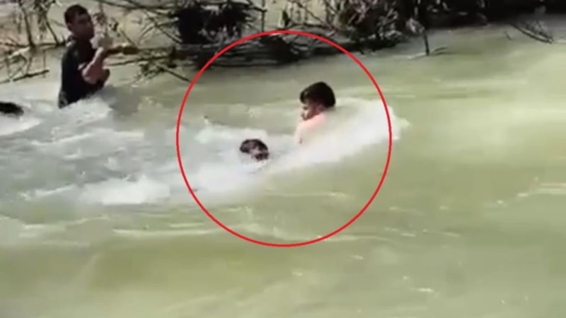 Boğulma tehlikesi geçiren Askeri K.'yi arkadaşları çaydan çıkarıp kurtardı. O anlar cep telefonu kamerasıyla kaydedildi.