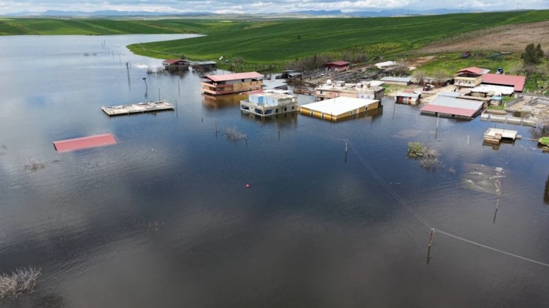 Su altında kalan yapılar drone ile görüntülenerek durumun ciddiyeti gözler önüne serildi.