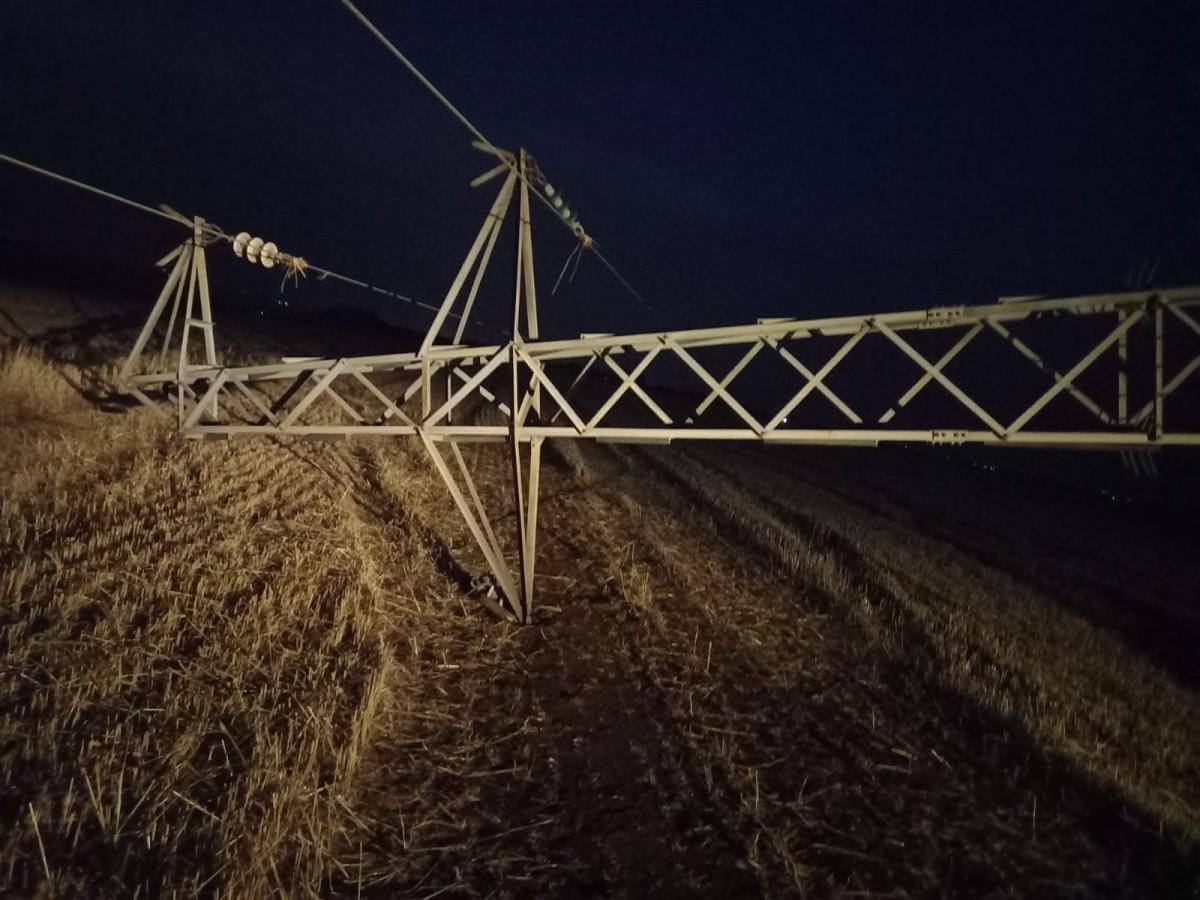 Öte yandan, fırtınada kırsal alandaki yüksek gerilim hattı da devrildi.
