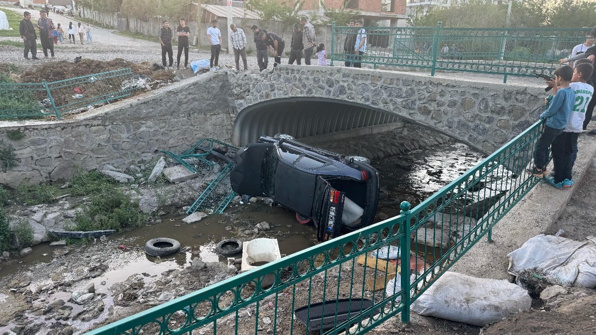 Köprüye geldiğinde kontrolü kaybeden M.K., korkulukları kıran otomobiliyle yaklaşık 4 metre yükseklikten düştü. Otomobil yan yatarken, M.K. yaralandı.