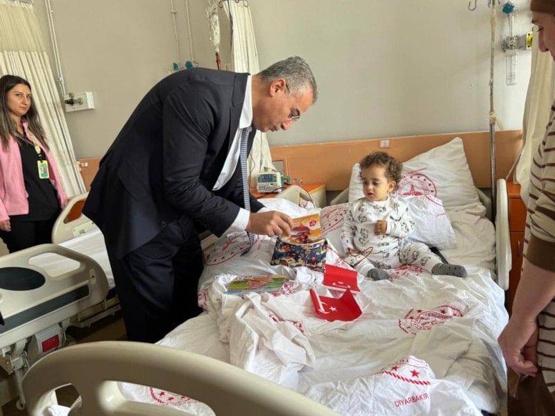 Etkinliğe katılan Diyarbakır İl Sağlık Müdürü Emre Asiltürk, çocukların bayramını kutlayarak servisleri tek tek gezdi. Odasından çıkamayan çocukları da ziyaret eden Asiltürk, “Çocuklarımızın bu özel günü neşeyle hatırlamalarını istiyoruz. Onların bir tebessümü bizim için en büyük mutluluk” ifadelerini kullandı.