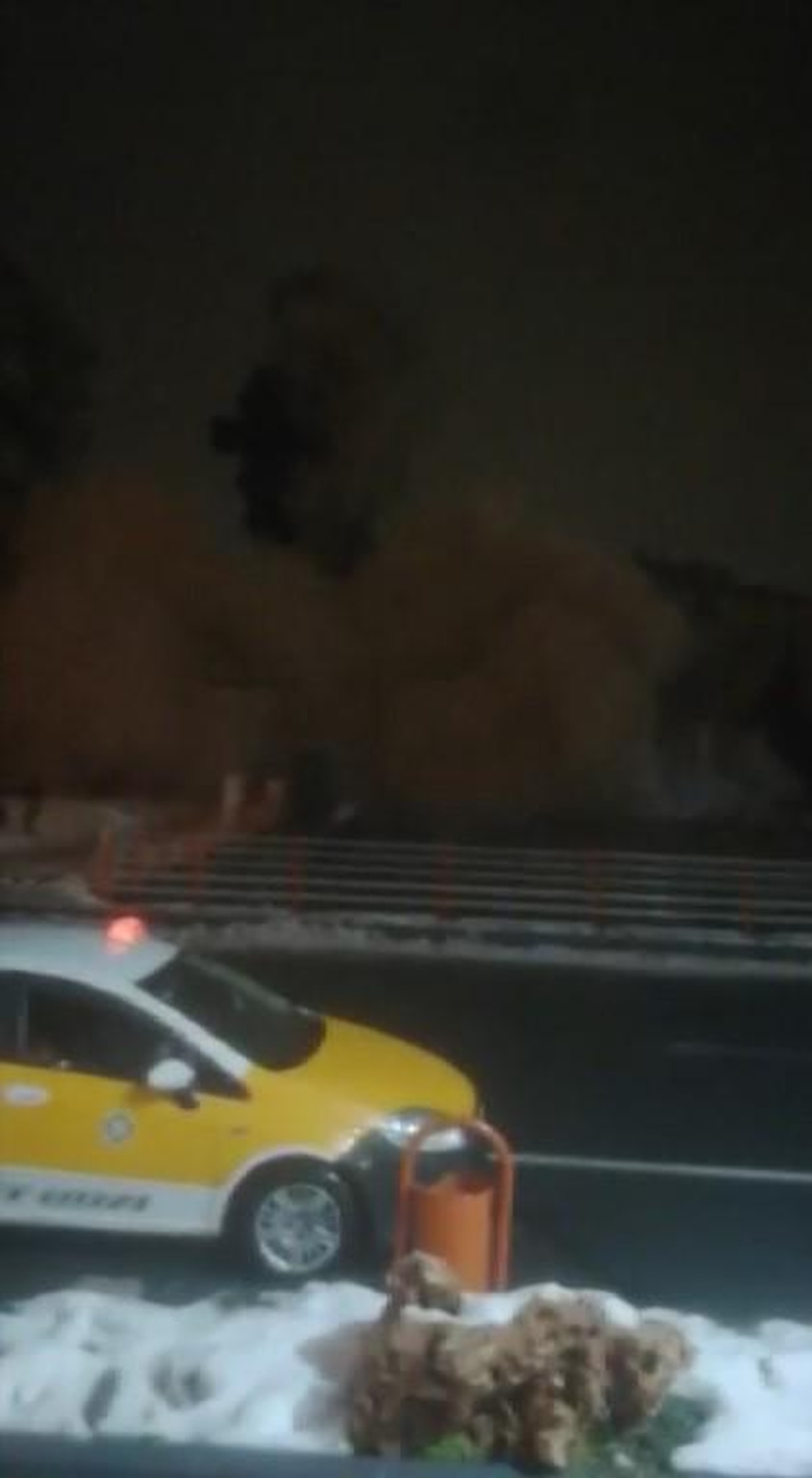 Deprem esnasında gökyüzünün yeryüzünü aydınlatmasıyla birlikte sarsıntının şiddetlendiği görüntüde, elektriklerin kesildiği görülüyor.