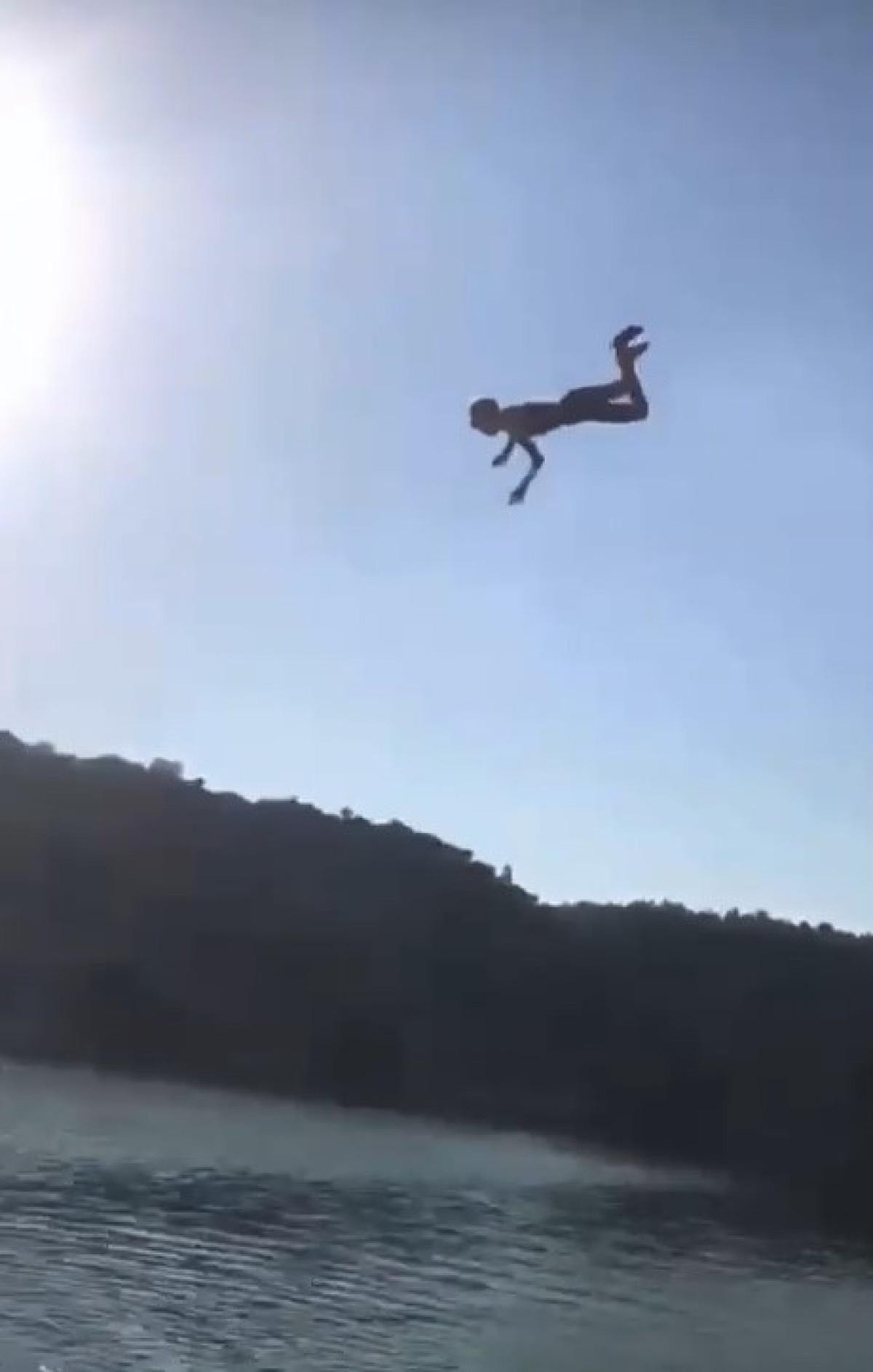 Takla atarak suya giren ve yaşı epey küçük olan çocukların tehlikeli oyunu, saniye saniye cep telefonu kameralarına yansıdı.